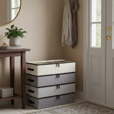 Pour ceux qui préfèrent des solutions plus souples, notre boite a chaussure EASYSHOES™ en coton modulable s'adapte à la forme de vos chaussures tout en offrant une touche de douceur à votre intérieur. Ces boites sont parfaites pour les chaussures délicates qui nécessitent un rangement plus doux.